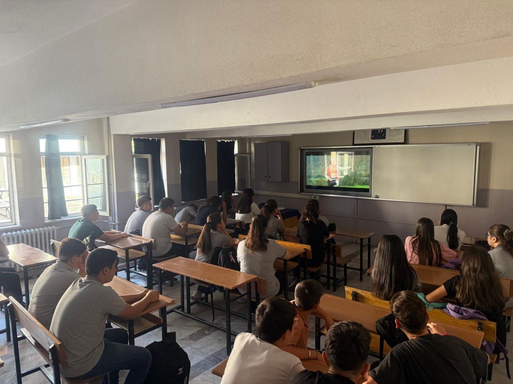 Yeşil Vatan" kavramını tanımaları, doğa sevgisi ve çevreyi koruma bilincini pekiştirmeleri, ormanlar konusunda yapılan çalışmalara değer vermeleri ve sürdürülebilir bir yaşam için Yeşil Vatan'ın önemini fark etmeleri amacıyla "Yeşil Vatan" filmi tüm öğrencilerimize izletildi.